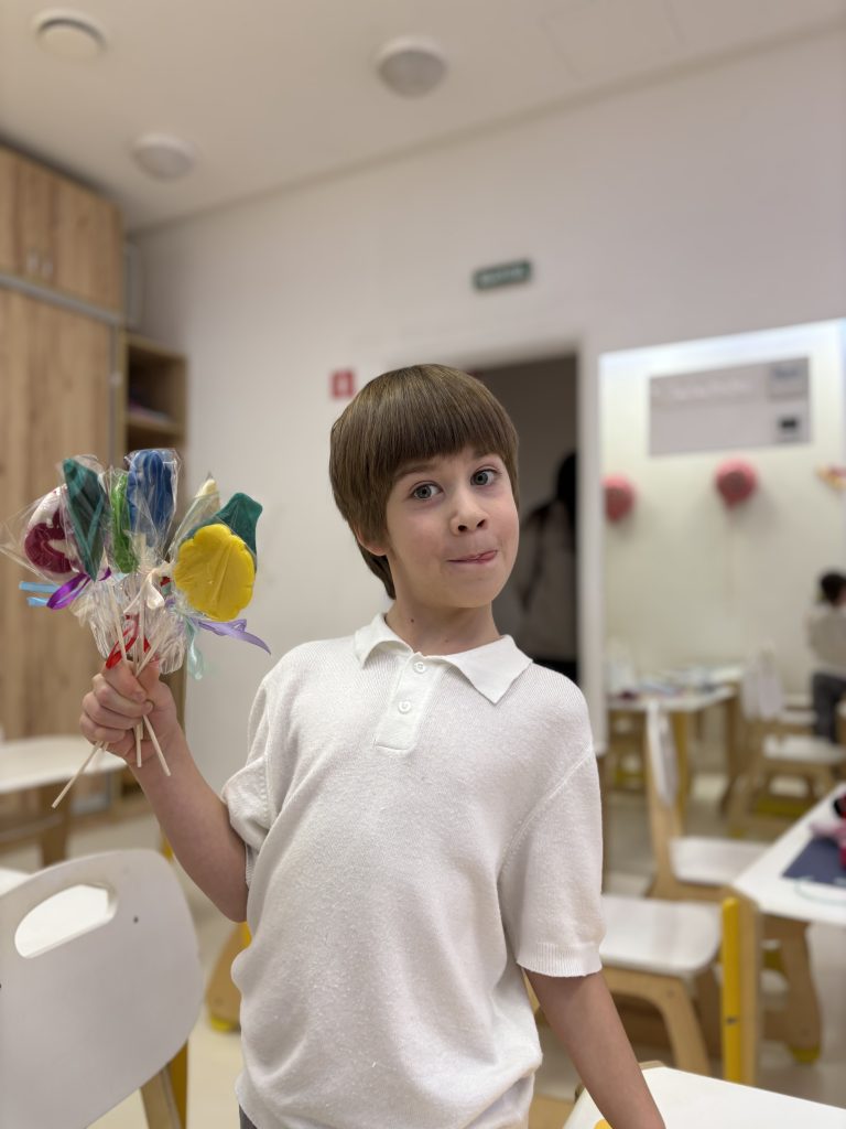 Под руководством мастера дети своими руками создали 6 леденцов различных форм. Процесс оказался не только вкусным, но и очень увлекательным. Мастер-класс подарил детям море радости, новых впечатлений и настоящее праздничное настроение.