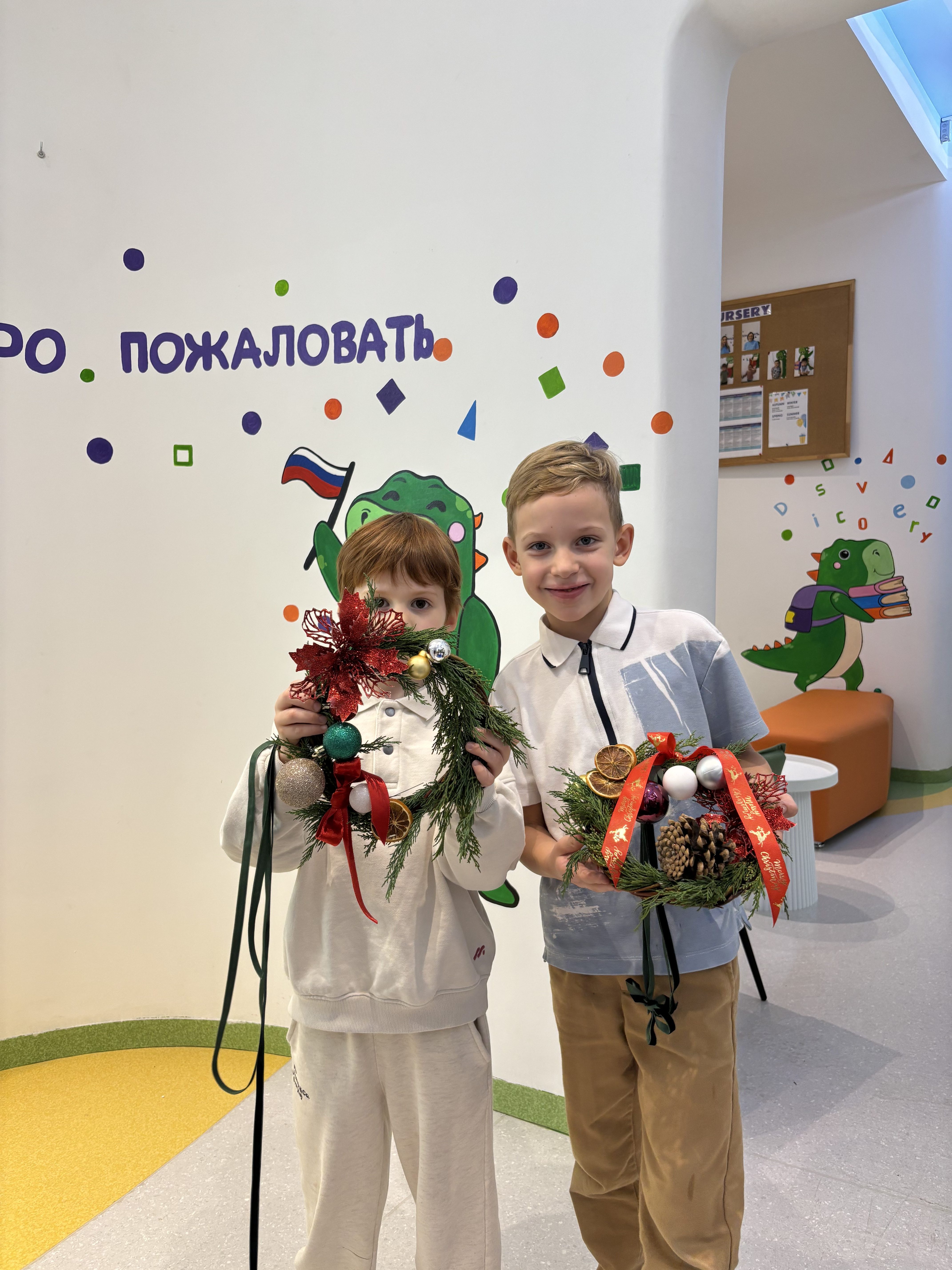 Дети вместе с мамами мастерили новогодние венки, превращая обычные материалы в маленькое праздничное чудо. Каждая семья создала свой особенный венок, отражающий настроение и фантазию маленьких мастеров. Мамы с удовольствием помогали детям, а малыши с гордостью показывали свои идеи. Такое совместное занятие стало не только творческим, но и по-настоящему душевным событием.